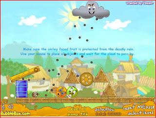 Salvaguarda la vida de esta esfera de color naranja. Utiliza los objetos a tu disposicion en cada nivel y cubrelo para que cuando pase la nube su lluvia no lo destruya.
